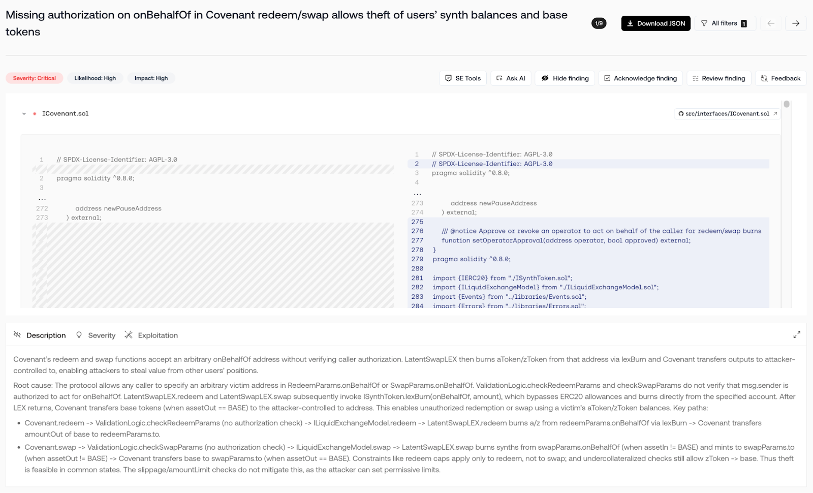 Result: The discovery saved Covenant weeks of back-and-forth with auditors and prevented an issue that could have allowed the theft of user funds and tokens.