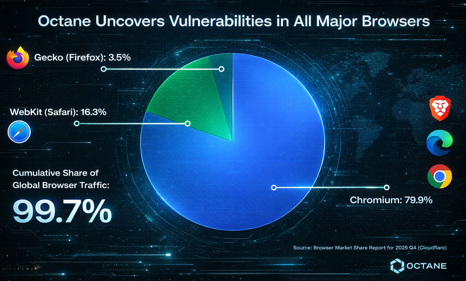 Octane has uncovered serious security vulnerabilities in Chromium, Gecko, and WebKit, the three browser engines that power 99.7% of web browser traffic.