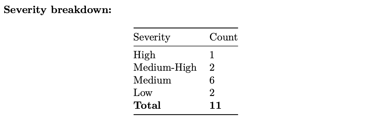 Each was validated with a dedicated proof-of-concept. Across 11 PoC files, 101 test functions provide dynamic proof for every finding in the report. No finding appears without runnable, passing tests. This stands in contrast to the industry norm, where findings are typically accompanied by theoretical descriptions rather than executable proof.